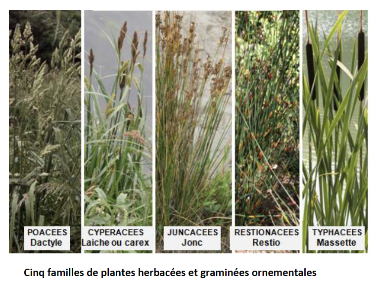 - Tailles : graminée d’ornement, au feuillage persistant, résistantes au froid ou à la sécheresse, graminée d’ombre ou de soleil, graminée à hautes tiges ou basses tiges, …